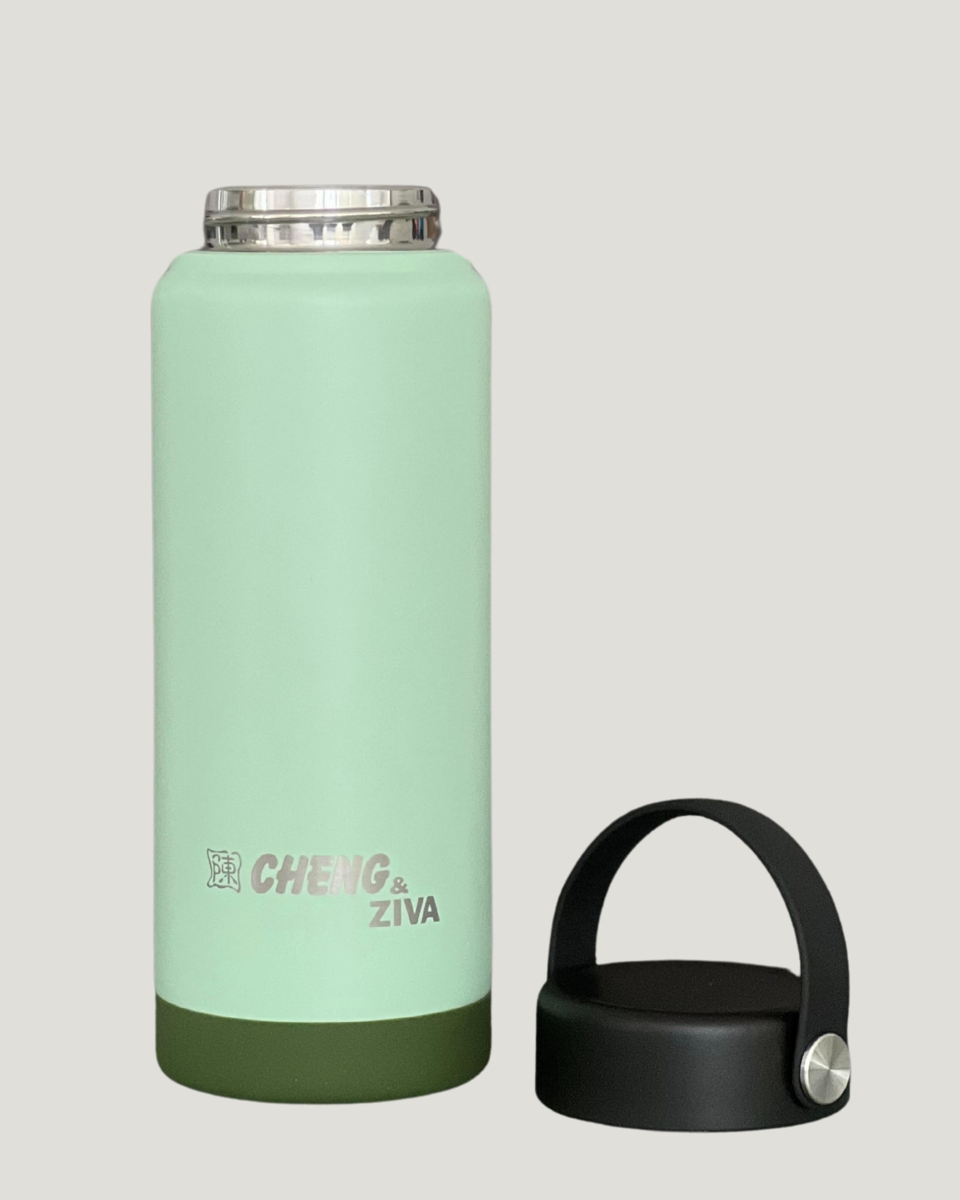 El termo CHENG & ZIVA está diseñado para acompañarte a donde vayas. Gracias a su doble pared de acero inoxidable, mantiene tus bebidas frías o calientes por más tiempo, sin condensación externa. Su agarradera superior integrada permite transportarlo fácilmente, mientras que la base de silicona antideslizante protege contra caídas o rayones.