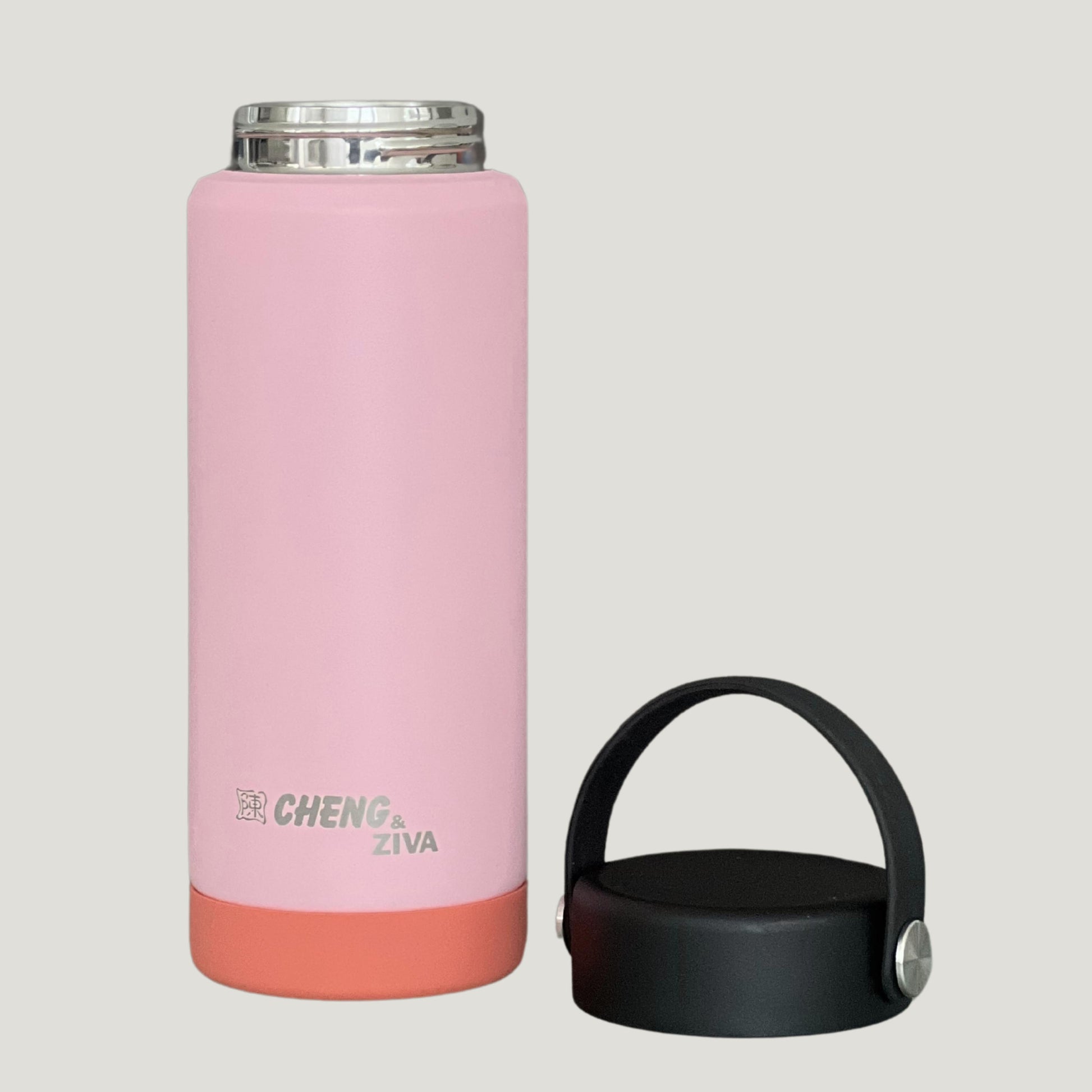 El termo CHENG & ZIVA está diseñado para acompañarte a donde vayas. Gracias a su doble pared de acero inoxidable, mantiene tus bebidas frías o calientes por más tiempo, sin condensación externa. Su agarradera superior integrada permite transportarlo fácilmente, mientras que la base de silicona antideslizante protege contra caídas o rayones.