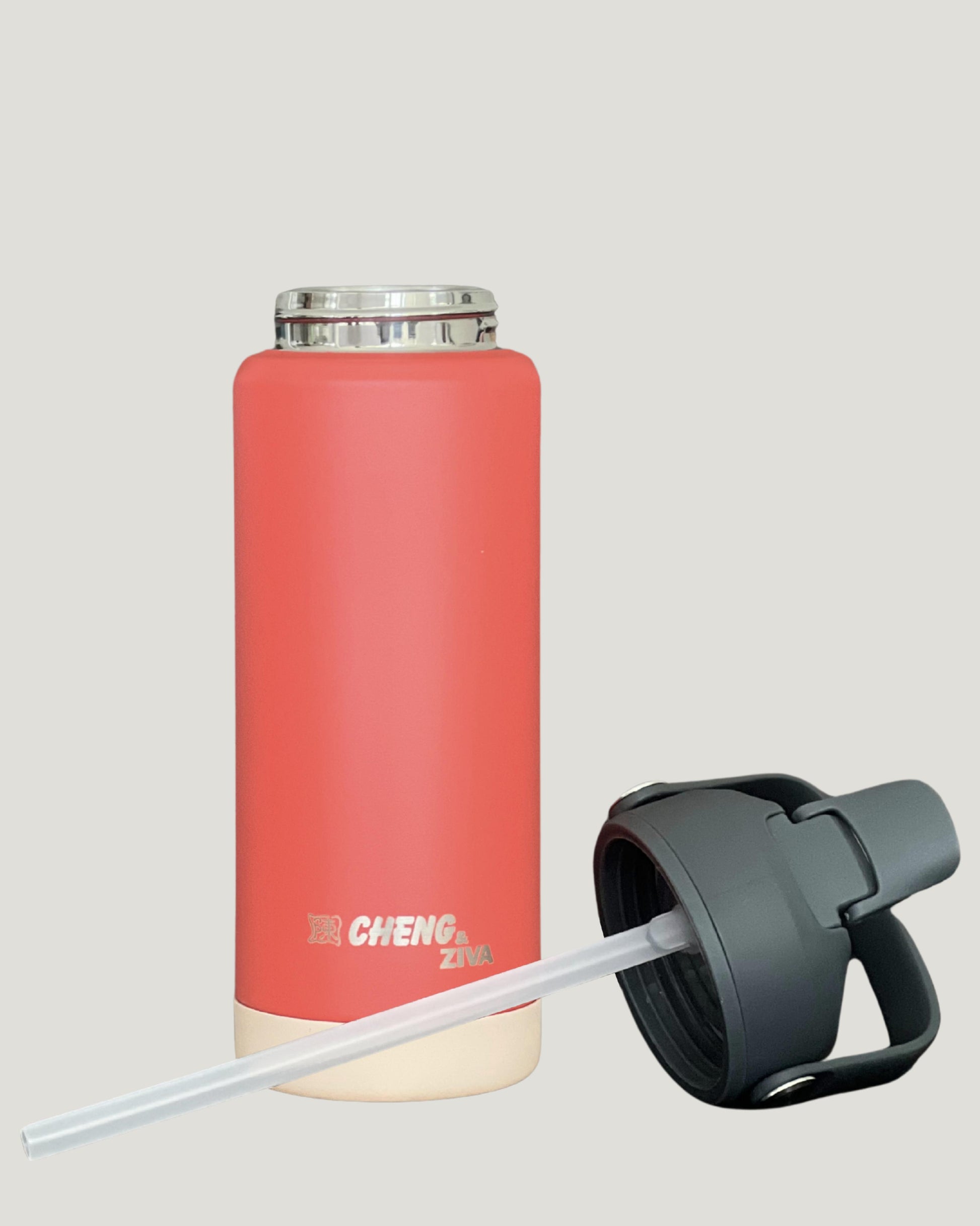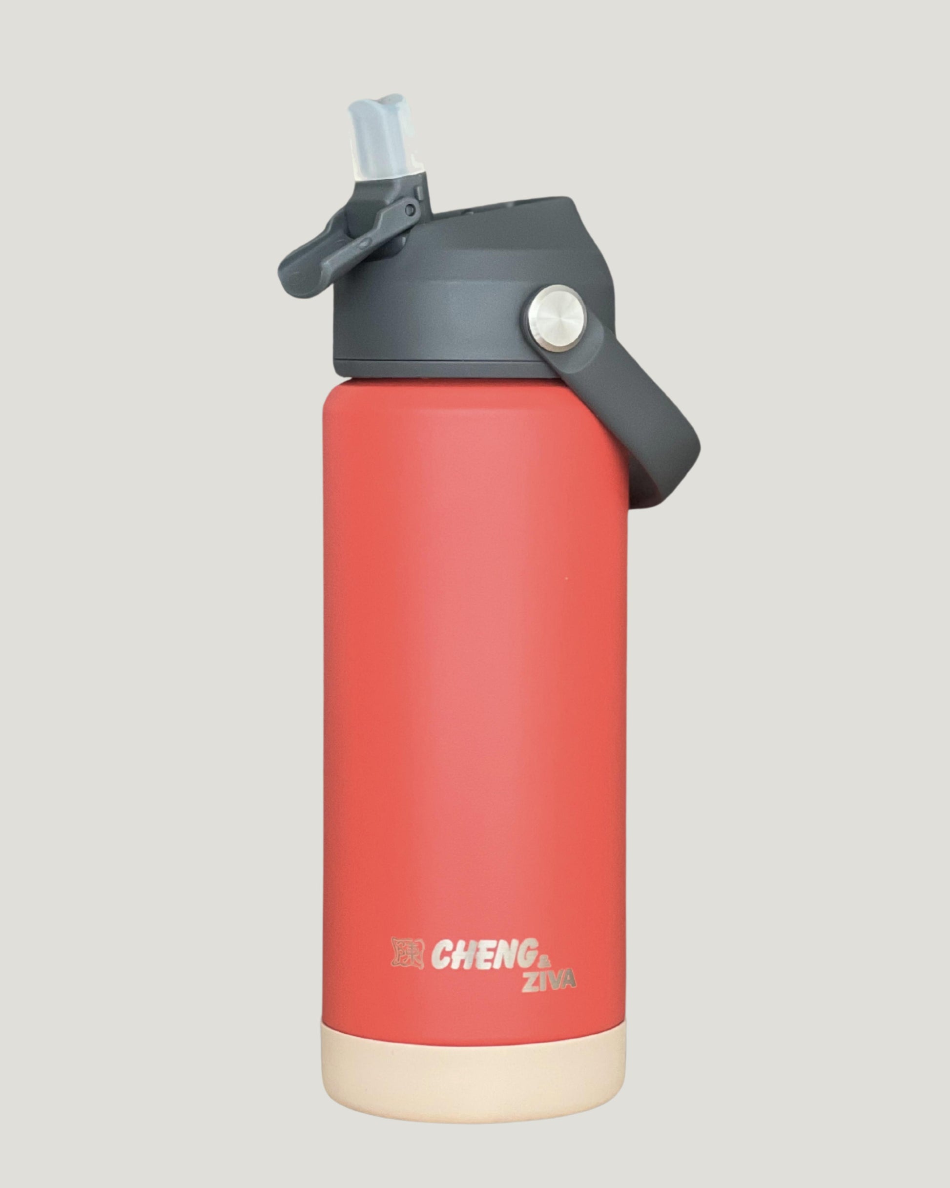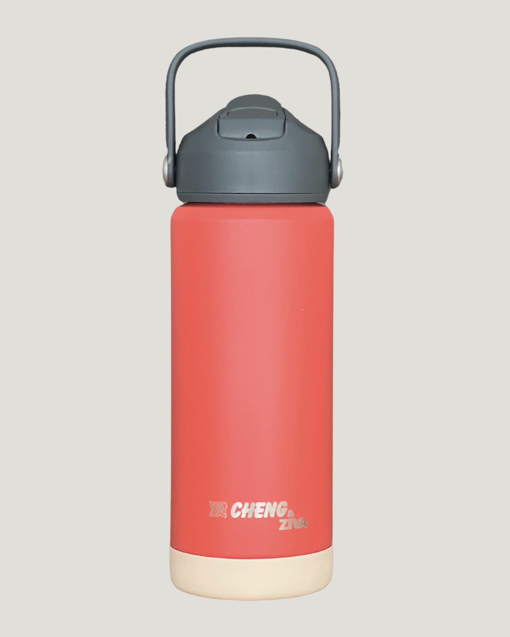 El termo CHENG & ZIVA está diseñado para acompañarte a donde vayas. Gracias a su doble pared de acero inoxidable, mantiene tus bebidas frías o calientes por más tiempo, sin condensación externa. Su agarradera superior integrada permite transportarlo fácilmente, mientras que la base de silicona antideslizante protege contra caídas o rayones.