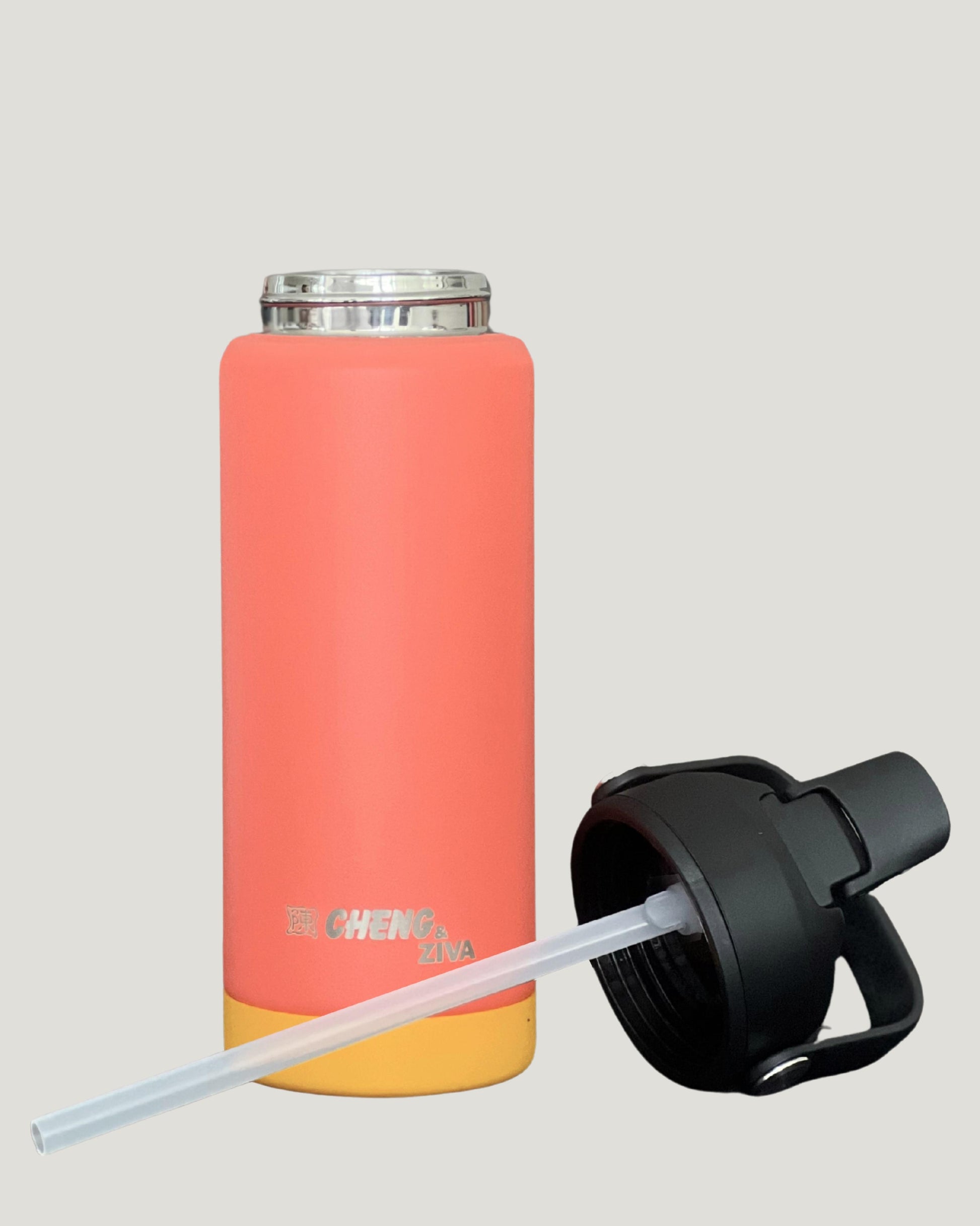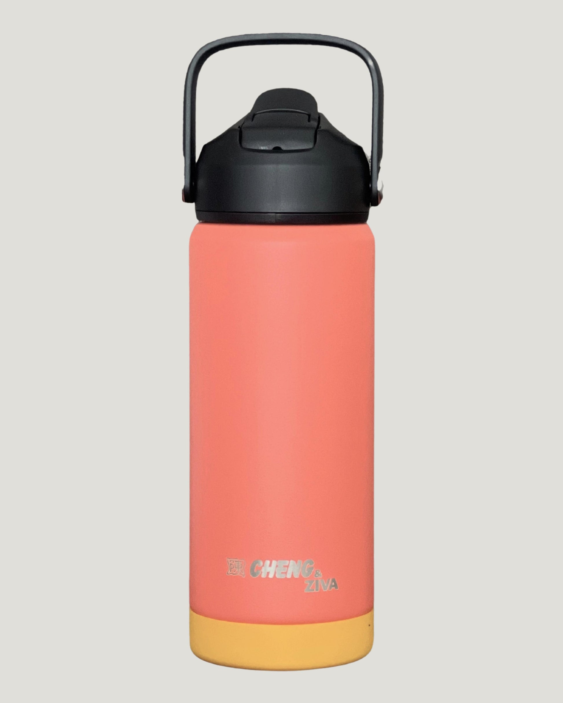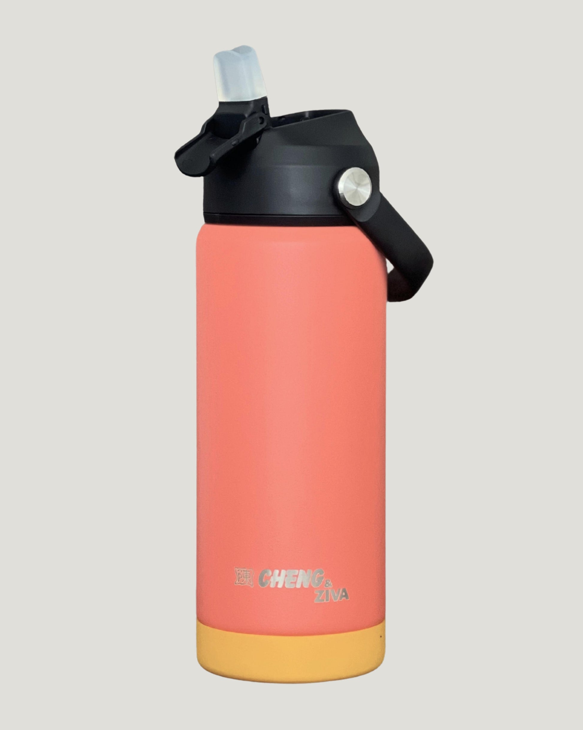 El termo CHENG & ZIVA está diseñado para acompañarte a donde vayas. Gracias a su doble pared de acero inoxidable, mantiene tus bebidas frías o calientes por más tiempo, sin condensación externa. Su agarradera superior integrada permite transportarlo fácilmente, mientras que la base de silicona antideslizante protege contra caídas o rayones.